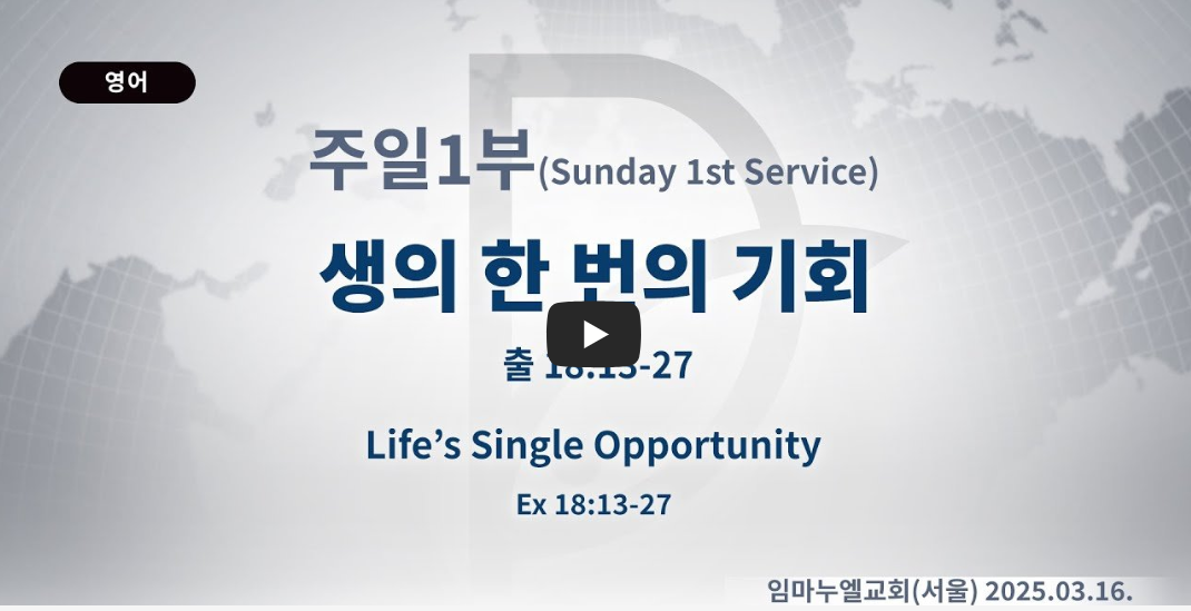 이드로는 사건이 일어났을 때 살리는 일을 선택했습니다. 하나님의 언약은 지금도 24시 성취되고 있습니다. 응답은 먼 곳이 아니라, 내 상황 속에서, 지금 받는 것입니다. 내가 서 있는 그 땅이(어려움) 바로 선교지입니다. 언약의 흐름을 제대로 보고, 그 흐름 속에 있는 것이 가장 중요합니다.