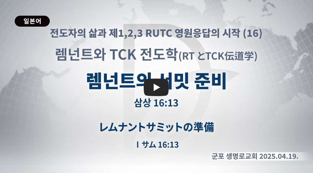 렘넌트는 그릇 준비도 해야 합니다. 어떤 일과 상황을 두고 옳고 그름을 따지며 실망하거나 한다면 세계복음화를 할 수 없습니다. 모든 문제에는 답이 있고, 모든 어려움과 갈등은 갱신이며, 모든 위기는 기회입니다. 이 정도 그릇이 되어야 합니다.