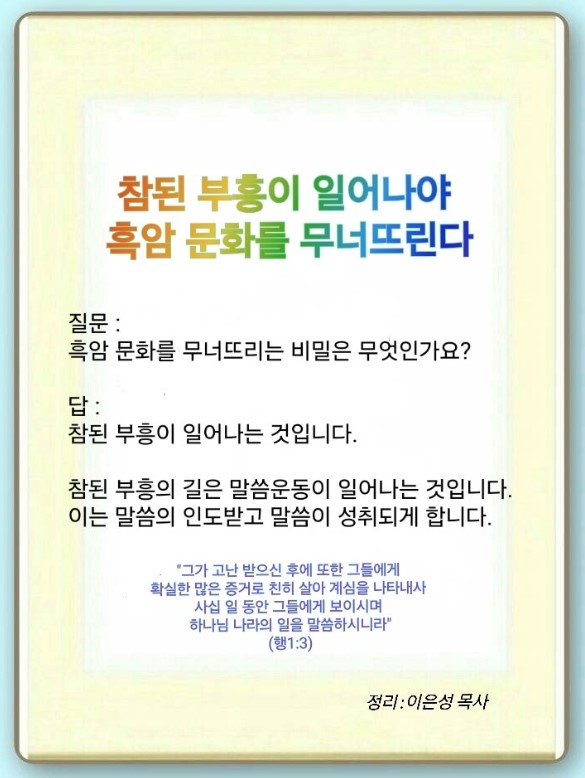 참된 부흥이 일어나야 흑암 문화를 무너뜨린다