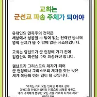 [전도자의 기도] 하나님! 군선교의 주역들이 일어나게 하옵소서. 이들을 통해 군의 영적 흐름이 바뀌며 군의 흑암 문화가 복음문화로 바뀌게 하옵소서.