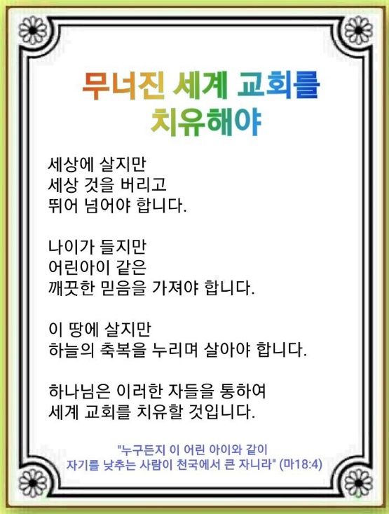 무너진 세계 교회를 치유해야(마태복음 18:1~10)
