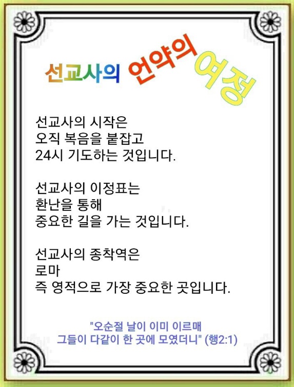 선교사의 언약의 여정_시작, 이정표, 종착역(사도행전 2:1)
