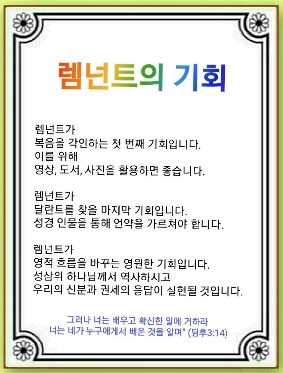 Remnant가 복음을 각인하도록 돕는 것입니다. 영상이나 도서, 사진 등의 증거를 활용하는 것도 좋습니다. 또, 기도가 영적 과학임을 알고 뿌리 내리도록 보여주어야 합니다. 영적 서밋, 기능 서밋, 문화 서밋이 될 후대를 위해 중요한 응답을 하나님은 이 시대와 교회와 가정에 허락하실 것입니다.