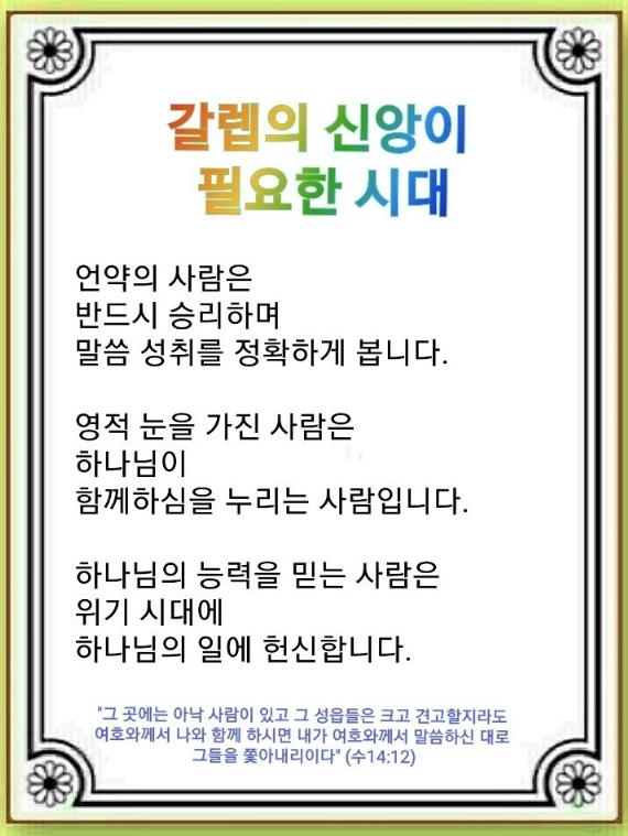 갈렙의 신앙이 필요한 시대(여호수아 14:6~15)