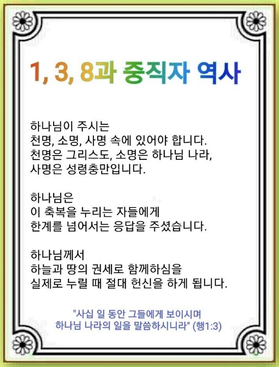 1, 3, 8과 중직자 역사(사도행전 1:3)