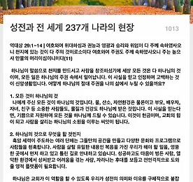 기도수첩 썸네일형 리스트형 순례자의 길(다니엘 6:10)-기도수첩 #기도수첩 2022년 3월 23일 수요일 순례자의 길(다니엘 6:10) 다니엘이 이 조서에 왕의 도장이 찍힌 것을 알고도 자기 집에 돌아가서는 윗방에 올라가 예루살렘으로 향한 창문을 열고 전에 하던 대로 하루 세 번씩 무릎을 꿇고 기도하며 그의 하나님께 감사하였더라 ♬ 찬송가 191장 내가 매일 기쁘게(통일 427) [문서 보기] https://www.evernote.com/shard/s372/sh/b5ee47b7-7161-e7e5-003e-bd2c6ef6082e/cbc9c89459fad5b57a6b35b6f1813fb1 핵심훈련메시지 / 2021.9.18 2022년 3월 23일(수) 분류 핵심훈련 제목 제1,2,3 RUTC응답의 현장(35)-(렘넌트데이) 10월 학원복음화 성경 일시/장소 2021년 9.. 더보기 영적 권세의 절대 이유(사무엘상 16:23)-기도수첩 #기도수첩 2022년 3월 18일 금요일 영적 권세의 절대 이유(사무엘상 16:23) 하나님께서 부리시는 악령이 사울에게 이를 때에 다윗이 수금을 들고 와서 손으로 탄즉 사울이 상쾌하여 낫고 악령이 그에게서 떠나더라 ♬ 찬송가 183장 빈 들에 마른 풀같이(통일 172) [문서 보기] https://www.evernote.com/shard/s372/sh/d733e0bb-7c2a-8eb5-488f-09c8143e9117/4f931efa52ea5c98ddf8deb7329d8044 임마누엘교회 주일 1부 / 2021.9.12 2022년 3월 18일(금) 분류 주일예배 설교- 주일1부 제목 (RTS주일) 영적권세의 절대 이유 성경 사무엘상 16:23 일시/장소 2021년 9월 12일, 임마누엘 교회(서울) 강사.. 더보기 세계복음화의 그릇 준비(창세기 37:1~11)-기도수첩 #기도수첩 2022년 3월 17일 목요일 세계복음화의 그릇 준비(창세기 37:1~11) 요셉이 다시 꿈을 꾸고 그의 형들에게 말하여 이르되 내가 또 꿈을 꾼즉 해와 달과 열한 별이 내게 절하더이다 하니라(9) ♬ 찬송가 620장 여기에 모인 우리 [문서 보기] https://www.evernote.com/shard/s372/sh/66641f7f-71c7-c6ba-9fd4-0c6960af11b0/8853100db68edb1f0d5ca0f8cffc7a3b 핵심훈련메시지 / 2021.9.11 2022년 3월 17일(목) 분류 핵심훈련 제목 제1,2,3 RUTC응답의 현장(34) -(RTS주일) 세계복음화의 그릇 준비 성경 창세기 37:1-11 일시/장소 2021년 9월 11일, 예원교회(온라인) 강사 류광수 .. 더보기 복음 Oneness 집중(사도행전 3:4)-기도수첩 #기도수첩 2022년 3월 15일 화요일 복음 Oneness 집중(사도행전 3:4) 베드로가 요한과 더불어 주목하여 이르되 우리를 보라 하니 ♬ 찬송가 508장 우리가 지금은 나그네 되어도(통일 270) [문서 보기] https://www.evernote.com/shard/s372/sh/b1f251d8-94bb-3abd-b400-b129c2b716b1/a573d25321912aac813714bd3b0952e8 북미주산업인온라인대회 3강 / 2021.9.8 2022년 3월 15일(화) 분류 2021- 북미주 산업인대회 제목 3강: Oneness 집중 성경 일시/장소 2021년 9월 7일-8일, 예원교회(온라인) 강사 류광수 목사 (정리: 차동호 목사) 주제어 ♠ 주제: 세계 살릴 수준, www.everno.. 더보기 이전 1 ··· 71 72 73 74 75 76 77 ··· 489 다음