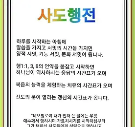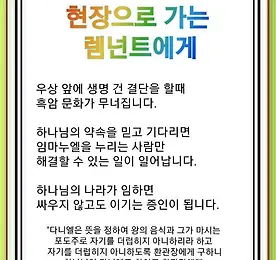 렘넌트 썸네일형 리스트형 현장으로 가는 Remnant에게(다니엘 1:5~9) - 기도수첩 #기도수첩 2018년 6월 22일 금요일 현장으로 가는 Remnant에게(다니엘 1:5~9) 환관장이 그들의 이름을 고쳐 다니엘은 벨드사살이라 하고 하나냐는 사드락이라 하고 미사엘은 메삭이라 하고 아사랴는 아벳느고라 하였더라 다니엘은 뜻을 정하여 왕의 음식과 그가 마시는 포도주로 자기를 더럽히지 아니하리라 하고 자기를 더럽히지 아니하도록 환관장에게 구하니 하나님이 다니엘로 하여금 환관장에게 은혜와 긍휼을 얻게 하신지라(7~9) ♬ 정시예배를 위한 찬송 / 28장 복의 근원 강림하사(구 28장) [문서 보기] http://www.evernote.com/l/AXSM3uubuL1O4Z8_3Ox4Wy2BgNEYTZN7m3k/ [동영상 보기] https://youtu.be/BaR2ja7onI0 현장에서 하나님의 .. 더보기 Remnant의 영적 상태(시편 78:70~72) - 기도수첩 2018년 5월 15일 화요일 Remnant의 영적 상태(시편 78:70~72) 또 그의 종 다윗을 택하시되 양의 우리에서 취하시며 젖 양을 지키는 중에서 그들을 이끌어 내사 그의 백성 인 야곱, 그의 소유인 이스라엘을 기르게 하셨더니 이에 그가 그들을 자기 마음의 완전함으로 기르고 그의 손 의 능숙함으로 그들을 지도하였도다 ♬ 정시예배를 위한 찬송 / 490장 주여 지난 밤 내 꿈에(구 542장) [문서 보기] http://www.evernote.com/l/AXT4Ggh-hp5MvoFC8OjnuChx6lyds4OZ4RA/ [동영상 보기] https://youtu.be/PL6CoFUc1Po 초대교회는 가정에서 시작되었습니다. 초대교회에 모인 모든 사람의 가정이 미션홈의 응답을 받았습니다. 보통의 가정에서.. 더보기 미션홈 - 62가지 마스터 플랜(출애굽기 2:1~10) - 기도수첩 #기도수첩 2018년 4월 4일 수요일 미션홈 - 62가지 마스터 플랜(출애굽기 2:1~10) 레위 가족 중 한 사람이 가서 레위 여자에게 장가 들어 그 여자가 임신하여 아들을 낳으니 그가 잘 생긴 것을 보고 석 달 동안 그를 숨겼으나(1~2) ♬ 정시예배를 위한 찬송 / 435장 나의 영원하신 기업(구 492장) [문서 보기] http://www.evernote.com/l/AXQvi8T3bgpLN6jisyjnnjzYuGHOtRz2NI0/ [동영상 보기] https://youtu.be/auDc_H_BzsI 세상은 학력이나 실력을 따지고 요구합니다. 3단체(뉴에이지, 프리메이슨, 유대인 조직)는 아이들을 비롯한 많은 사람이 잠재력을 가지고 있으며 이것을 발견해야 한다고 주장하고 있습니다. 그러나 이것을 넘.. 더보기 사도행전(사도행전 1:1~8) - 기도수첩 #기도수첩 2018년 3월 24일 토요일 사도행전(사도행전 1:1~8) 데오빌로여 내가 먼저 쓴 글에는 무릇 예수께서 행하시며 가르치시기를 시작하심부터 그가 택하신 사도들에게 성령으로 명하시고 승천하신 날까지의 일을 기록하였노라(1~2) ♬ 정시예배를 위한 찬송 / 93장 예수는 나의 힘이요(구 93장) [문서 보기] http://www.evernote.com/l/AXTES-JgNMdHQ77rCtAq-2XNRlsO1Z8yXRc/ [동영상 보기] https://youtu.be/bOSijeSnllA 좋은 배경을 갖추고 양질의 교육을 받아서 큰일을 이루는 사람이 있는가 하면, 오히려 다른 사람에게 피해를 주는 사람도 있습니다. 반면에 세상적으로 좋은 조건을 갖추지 못했음에도 불구하고 조건을 갖춘 사람보다 더 .. 더보기 이전 1 ··· 62 63 64 65 66 67 다음