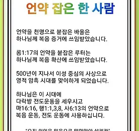 사람 썸네일형 리스트형 세계의 틀을 깬 사람들(매일성경5:31)-기도수첩 #기도수첩 2019년 5월 31일 금요일(매일성경) 세계의 틀을 깬 사람들(출애굽기 2:1~10) 레위 가족 중 한 사람이 가서 레위 여자에게 장가 들어 그 여자가 임신하여 아들을 낳으니 그가 잘 생긴 것을 보고 석 달 동안 그를 숨겼으나(1~2) ♬ 정시예배를 위한 찬송 / 171장 하나님의 독생자 [문서 보기] https://www.evernote.com/l/AXTibxGAROVO06mZGLGqozGQPdHyTNuNpyM/ [동영상 보기] https://youtu.be/dV7GX35DW8g 어려움을 만났을 때 속지 말아야 합니다. 그 틀을 깨고 빠져 나와야 합니다. 세상이 말하는 훌륭한 지도자들은 모두 복음의 가치를 모르는 실수를 범했습니다. 이스라엘 백성이 노예가 될 수밖에 없던 이유도 마찬가지였습.. 더보기 나라 사랑(매일성경 3:1) - 기도수첩 #기도수첩 2019년 3월 1일 금요일(매일성경 3:1) 나라 사랑(열왕기상 18:1~13) 아합이 왕궁 맡은 자 오바댜를 불렀으니 이 오바댜는 여호와를 지극히 경외하는 자라 이세벨이 여호와의 선지자들을 멸할 때에 오바댜가 선지자 백 명을 가지고 오십 명씩 굴에 숨기고 떡과 물을 먹였더라(3~4) ♬ 정시예배를 위한 찬송 / 354장 주를 앙모하는 자(구 394장) [문서 보기] https://www.evernote.com/l/AXRlsxTFeUJGvbpLy4Fz7sbnSs3X2h_wHe8/ [동영상 보기] https://youtu.be/uULxE4WRrNM 공무원 현장이 어렵다는 생각이 들 수 있습니다. 공무원은 세상에서 성공한 것처럼 보이지만, 사탄이 서밋된 현장에서 무릎 꿇기 쉽습니다. 그래서 하나.. 더보기 언약 잡은 한 사람(로마서 1:17) - 기도수첩 #기도수첩 2018년 5월 11일 금요일 언약 잡은 한 사람(로마서 1:17) 복음에는 하나님의 의가 나타나서 믿음으로 믿음에 이르게 하나니 기록된 바 오직 의인은 믿음으로 말미암아 살리라 함과 같으니라 ♬ 정시예배를 위한 찬송 / 461장 십자가를 질 수 있나(구 519장) [문서 보기] http://www.evernote.com/l/AXR4bIyb29RM35ubxve5pVlzHHCbz4uoPtY/ [동영상 보기] https://youtu.be/wChJPJ5h1kQ 하나님은 언약 잡은 한 사람을 통해 언약을 성취하십니다. 성경 66권의 핵심, 곧 결론은 오직 그리스도, 하나님 나라, 오직 성령으로 말미암아 증인이 되는 것입니다(사도행전 1:1, 3, 8). 이 언약 붙잡은 사람의 걸음이 바로 언약의 여.. 더보기 사람을 살리는 전도제자(사도행전 16:31) - 기도수첩 #기도수첩 2018년 3월 15일 목요일 사람을 살리는 전도제자(사도행전 16:31) 이르되 주 예수를 믿으라 그리하면 너와 네 집이 구원을 받으리라 하고 ♬ 정시예배를 위한 찬송 / 337장 내 모든 시험 무거운 짐을(구 363장) [문서 보기] http://www.evernote.com/l/AXTZIjyT52dCT6K5FtY6QoaBAv_qe_s7JLk/ [동영상 보기] https://youtu.be/EyWWTWi6gNE 경찰, 소방 등 국민의 안전과 편의를 맡은 공무원들은 사실 신앙생활하기 어려운 환경 가운데 있습니다. 그러나 신앙생활에 승리한 성경의 인물들은 대부분 나라를 위해 일하는 공무원이었습니다. 이들은 모두 ‘24시 비밀’을 누리고 있었습니다. 그 비밀의 내용은 무엇일까요? 1. 개인의 영.. 더보기 이전 1 2 3 4 5 다음