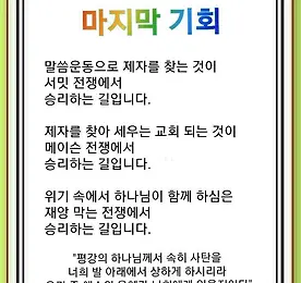 임마누엘 썸네일형 리스트형 영적 치유(창세기 41:38) - 기도수첩 #기도수첩 2018년 9월 22일 토요일 영적 치유(창세기 41:38) 바로가 그의 신하들에게 이르되 이와 같이 하나님의 영에 감동된 사람을 우리가 어찌 찾을 수 있으리요 하고 ♬ 정시예배를 위한 찬송 / 183장 빈 들에 마른 풀같이(구 172장) [문서 보기] http://www.evernote.com/l/AXQtkTSi5z9AQpJgw1zmvnXNH3CVXE0CGt8/ [동영상 보기] https://youtu.be/4278ey_II3Q 복음 안에 있는 영적 서밋의 축복은 아무도 빼앗아 갈 수 없습니다. 이것은 구원받은 하나님 자녀에게만 주신 축복입니다. 그래서 왕이 할 수 없었던 일을 요셉은 할 수 있었던 것입니다. 아무도 도와주지 않는 위기 속에서 성경의 Remnant 7명은 여호와의 영에 감동된.. 더보기 마지막 기회(로마서 16:20) - 기도수첩 #기도수첩 2018년 9월 21일 금요일 마지막 기회(로마서 16:20) 평강의 하나님께서 속히 사탄을 너희 발 아래에서 상하게 하시리라 우리 주 예수의 은혜가 너희에게 있을지어다 ♬ 정시예배를 위한 찬송 / 349장 나는 예수 따라가는(구 387장) [문서 보기] http://www.evernote.com/l/AXSg4L2BvFlD4Lt3AwqEUylEGnYYbF2W1hw/ [동영상 보기] https://youtu.be/0P4V4JZTBHo 성경에서만 밝히고 있는 아주 중요한 내용이 있습니다. 하나님의 구원 계획입니다. 그러나 사탄은 함정을 만들어 하나님을 믿지 못하도록 사람을 속이고 있습니다(창세기 3, 6, 11장). 그뿐만 아니라 눈에 보이는 것으로 사로잡고 있습니다(사도행전 13, 16, 19장.. 더보기 첫 번째 기회(로마서 16:1~27) - 기도수첩 #기도수첩 2018년 9월 20일 목요일 첫 번째 기회(로마서 16:1~27) 나의 복음과 예수 그리스도를 전파함은 영세 전부터 감추어졌다가 이제는 나타내신 바 되었으며 영원하신 하나님의 명을 따라 선지자들의 글로 말미암아 모든 민족이 믿어 순종하게 하시려고 알게 하신 바 그 신비의 계시를 따라 된 것이니 이 복음으로 너희를 능히 견고하게 하실 지혜로우신 하나님께 예수 그리스도로 말미암아 영광이 세세무궁하도록 있을지어다 아멘(25~27) ♬ 정시예배를 위한 찬송 / 586장 어느 민족 누구게나(구 521장) [문서 보기] http://www.evernote.com/l/AXQOVc4GOk9Mr5Ew9pAXWonxBUX7SOSU9UI/ [동영상 보기] https://youtu.be/8z9fxVX8Xzw 지구.. 더보기 에덴 동산을 회복하는 성전(창세기 2:8~17) - 기도수첩 #기도수첩 2018년 9월 19일 수요일 에덴 동산을 회복하는 성전(창세기 2:8~17) 여호와 하나님이 그 사람을 이끌어 에덴 동산에 두어 그것을 경작하며 지키게 하시고 여호와 하나님이 그 사람에게 명하여 이르시되 동산 각종 나무의 열매는 네가 임의로 먹되 선악을 알게 하는 나무의 열매는 먹지 말라 네가 먹는 날에는 반드시 죽으리라 하시니라(15~17) ♬ 정시예배를 위한 찬송 / 210장 시온성과 같은 교회(구 245장) [문서 보기] http://www.evernote.com/l/AXS5ViDx8sBGgoUOqqd3FRYGAYDYFbCJLy4/ [동영상 보기] https://youtu.be/wqrifQN-Ts4 하나님의 말씀은 반드시 성취됩니다. 우리 역시 성전 건축이라는 방향을 잡고 말씀을 붙잡을.. 더보기 이전 1 ··· 251 252 253 254 255 256 257 ··· 329 다음