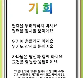 임마누엘 썸네일형 리스트형 말씀 정리(히브리서 4:12) - 기도수첩 #기도수첩 2018년 9월 8일 토요일 말씀 정리(히브리서 4:12) 하나님의 말씀은 살아 있고 활력이 있어 좌우에 날선 어떤 검보다도 예리하여 혼과 영과 및 관절과 골수를 찔러 쪼개기까지 하며 또 마음의 생각과 뜻을 판단하나니 ♬ 정시예배를 위한 찬송 / 546장 주님 약속하신 말씀 위에서(구 399장) [문서 보기] http://www.evernote.com/l/AXQkLTwloA5Goa1BOLoP6aN_81d-Mhubttk/ [동영상 보기] https://youtu.be/Hn4NLsF7Mdg 말씀이 준비되는 곳에는 반드시 성령이 역사하십니다. 그래서 우리는 말씀을 제대로 정리해야 합니다. 성경은 말씀을 주시는 분이 하나님이시라는 사실을 3,900번이나 언급합니다. 하나님은 말씀으로 세상을 창조하셨고.. 더보기 기회(다니엘 3:16~18) - 기도수첩 #기도수첩 2018년 9월 7일 금요일 기회(다니엘 3:16~18) 사드락과 메삭과 아벳느고가 왕에게 대답하여 이르되 느부갓네살이여 우리가 이 일에 대하여 왕에게 대답할 필요가 없나이다 왕이여 우리가 섬기는 하나님이 계시다면 우리를 맹렬히 타는 풀무불 가운데에서 능히 건져내시겠고 왕의 손에서도 건져내시리이다 그렇게 하지 아니하실지라도 왕이여 우리가 왕의 신들을 섬기지도 아니하고 왕이 세우신 금 신상에게 절하지도 아니할 줄을 아옵소서 ♬ 정시예배를 위한 찬송 / 357장 주 믿는 사람 일어나(구 397장) [문서 보기] http://www.evernote.com/l/AXSCF3TG8J9HobPP3QXxibkOPFLxWKdLAF0/ [동영상 보기] https://youtu.be/xJjLxJUIv5E 어떤 어.. 더보기 결단(다니엘 1:8~9) - 기도수첩 #기도수첩 2018년 9월 6일 목요일 결단(다니엘 1:8~9) 다니엘은 뜻을 정하여 왕의 음식과 그가 마시는 포도주로 자기를 더럽히지 아니하리라 하고 자기를 더럽히지 아니하도록 환관장에게 구하니 하나님이 다니엘로 하여금 환관장에게 은혜와 긍휼을 얻게 하신지라 ♬ 정시예배를 위한 찬송 / 365장 마음 속에 근심 있는 사람(구 484장) [문서 보기] http://www.evernote.com/l/AXSRDjoLXflGvIh9rOA47z4yxFKkiUM9-4Y/ [동영상 보기] https://youtu.be/70r5_BW61i4 하나님은 마지막 때에 어려움이 올 것이라고 말씀하셨습니다. 이때 하나님을 믿는 자들은 결단해야 합니다. 다니엘은 바벨론의 포로였지만, 우상 앞에 드려진 음식을 왕이 주어도 먹지 .. 더보기 에베소서(에베소서 1:3~4) - 기도수첩 #기도수첩 2018년 9월 5일 수요일 에베소서(에베소서 1:3~4) 찬송하리로다 하나님 곧 우리 주 예수 그리스도의 아버지께서 그리스도 안에서 하늘에 속한 모든 신령한 복을 우리에게 주시되 곧 창세 전에 그리스도 안에서 우리를 택하사 우리로 사랑 안에서 그 앞에 거룩하고 흠이 없게 하시려고 ♬ 정시예배를 위한 찬송 / 350장 우리들이 싸울 것은(구 393장) [문서 보기] http://www.evernote.com/l/AXQDI3Ec6bJGtaO8SssdiBawUwyJCdeg5lw/ [동영상 보기] https://youtu.be/t5uQNvA-DJc 기도를 하면서 말씀을 들을 때, 불신자들은 이해할 수 없는 일이 일어납니다. 성령께서 역사하시고 흑암 권세가 무너집니다. 하늘 문이 열리고 하나님이 주의.. 더보기 이전 1 ··· 254 255 256 257 258 259 260 ··· 329 다음