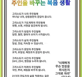 찬송 썸네일형 리스트형 산업의 방법(요한복음 19:30) -기도수첩 #기도수첩 2018년 9월 25일 화요일 산업의 방법(요한복음 19:30) 예수께서 신 포도주를 받으신 후에 이르시되 다 이루었다 하시고 머리를 숙이니 영혼이 떠나가시니라 ♬ 정시예배를 위한 찬송 / 412장 내 영혼의 그윽히 깊은 데서(구 469장) [문서 보기] http://www.evernote.com/l/AXQNMNknHD5DZZWyt1WnW3hSe7QaMcxC6VA/ [동영상 보기] https://youtu.be/JFKxF7ARW4k 우리가 해결해야 할 일은 하나도 없습니다. 그리스도께서 다 이루셨기 때문입니다(요한복음 19:30). 그러므로 그리스도 안에서 동행하기만 하면 됩니다. 모든 것은 우리가 아닌 우리 안에 계신 그리스도께서 하십니다(갈라디아서 2:20). 이것이 우리의 방향입니다. 그.. 더보기 영적 치유(창세기 41:38) - 기도수첩 #기도수첩 2018년 9월 22일 토요일 영적 치유(창세기 41:38) 바로가 그의 신하들에게 이르되 이와 같이 하나님의 영에 감동된 사람을 우리가 어찌 찾을 수 있으리요 하고 ♬ 정시예배를 위한 찬송 / 183장 빈 들에 마른 풀같이(구 172장) [문서 보기] http://www.evernote.com/l/AXQtkTSi5z9AQpJgw1zmvnXNH3CVXE0CGt8/ [동영상 보기] https://youtu.be/4278ey_II3Q 복음 안에 있는 영적 서밋의 축복은 아무도 빼앗아 갈 수 없습니다. 이것은 구원받은 하나님 자녀에게만 주신 축복입니다. 그래서 왕이 할 수 없었던 일을 요셉은 할 수 있었던 것입니다. 아무도 도와주지 않는 위기 속에서 성경의 Remnant 7명은 여호와의 영에 감동된.. 더보기 주인을 바꾸는 복음 생활(요한복음 2:1~12) - 기도수첩 #기도수첩 2018년 9월 15일 토요일 주인을 바꾸는 복음 생활(요한복음 2:1~12) 그의 어머니가 하인들에게 이르되 너희에게 무슨 말씀을 하시든지 그대로 하라 하니라 (5) ♬ 정시예배를 위한 찬송 / 270장 변찮는 주님의 사랑과(구 214장) [문서 보기] http://www.evernote.com/l/AXRMlLR6ZyVBArRToGVPSGnI3RmXClbmSkM/ [동영상 보기] https://youtu.be/KnXVHva3SkA 신앙생활에 성공하는 중요한 방법은 하나님의 인도를 받는 것입니다. 하나님의 인도를 잘 받으려면 예수님이 우리 삶의 주인이 되어야 합니다. 가나 혼인잔치에서 마리아는 종들에게 예수님이 무슨 말씀을 하시든지 그대로 하라고 했습니다. 하인이 예수님의 말씀에 순종한 결과,.. 더보기 영적 힘(사무엘상 17:35) - 기도수첩 #기도수첩 2018년 9월 13일 목요일 영적 힘(사무엘상 17:35) 내가 따라가서 그것을 치고 그 입에서 새끼를 건져내었고 그것이 일어나 나를 해하고자 하면 내가 그 수염을 잡고 그것을 쳐죽였나이다 ♬ 정시예배를 위한 찬송 / 384장 나의 갈 길 다 가도록(구 434장) [문서 보기] http://www.evernote.com/l/AXSPZm91xsZG6bIwjDZ2pJcG74PFQFBmKKA/ [동영상 보기] https://youtu.be/bH-0QmmbG44 지금 각인되는 것은 반드시 열매를 맺습니다. 하나님이 주신 영적 힘을 가지고 성경을 읽으며 위인들의 이야기를 각인하면 큰 응답이 찾아옵니다. 나아가 전문분야의 책을 읽고 관련된 말씀을 찾는다면 다윗처럼 중요한 시간표를 만나게 됩니다. 이때 .. 더보기 이전 1 2 3 4 5 6 ··· 12 다음